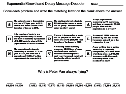 Exponential Growth And Decay Word Problems Worksheet Answers - Openalgebra Com Exponential Growth And Decay : Exponential growth and decay word problems find a bank account balance if the account starts with $100, has an annual rate of 4%, and the money left in the account for 12 years.